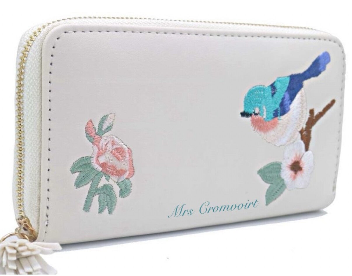 Verkrijgbaar in 4 kleuren. Roze, crème kleur, mint groen en blauw met verfijnde borduursels van een vogel en bloemen, en een hoogwaardige afwerking, is dit accessoire een echte eyecatcher.