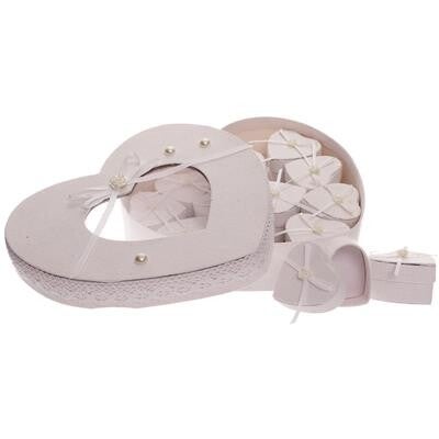 Dit grote witte hart is gevuld met 12 kleine harten doosjes. Deze doosjes kunnen naar wens worden gevuld met een lief briefje voor de gasten als aandenken, een klein snoepje of chocolade.